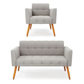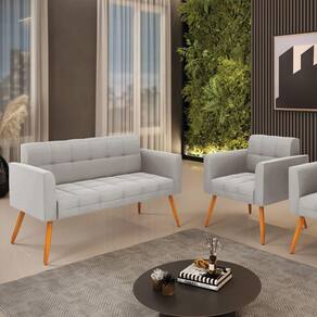 Kit 1 Sofá Namoradeira e 1 Poltrona Elisa Veludo Pés Palito Castanho - D`Rossi - Cinza