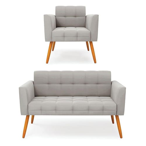 Você irá receber: 01 Sofá Namoradeira e 01 Poltrona - Entregue em: 02 Volumes