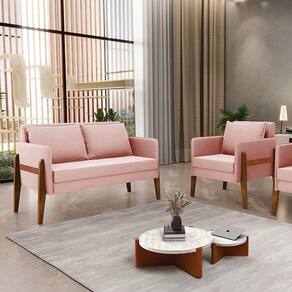 Ter uma casa com móveis de qualidade e que dure por anos é o sonho de qualquer pessoa. Afinal, quem não gosta de estar em um ambiente que transmita a sensação de acolhimento não é mesmo? Com este Kit 01 Namoradeira e 01 Poltrona Lana, você consegue levar aconchego e leveza a qualquer ambiente. Confeccionado em madeira de eucalipto proveniente de reflorestamento, suportando em média até 120 Kg, garantindo uma maior resistência e Veludo, o estofamento do assento e encosto é composto de espuma D-23, na lateral vem com uma tira de corano, que dá um charme todo especial ao produto. Olha só que legal, as almofadas soltas além de serem totalmente confortáveis e extremamente macias, dão a opção de mudar a cara do ambiente quando quiser. Então, que tal aproveitar a nossa super novidade? Aproveite!