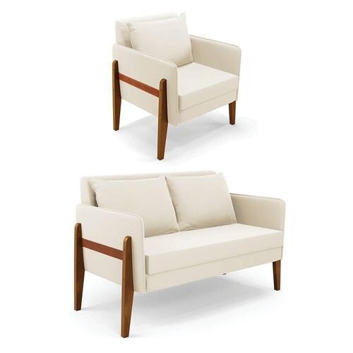Kit 1 Sofá Namoradeira e 1 Poltrona Lana Veludo Base de Madeira - D`Rossi - Bege
