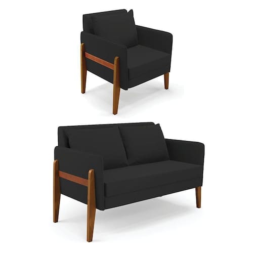 Ter uma casa com móveis de qualidade e que dure por anos é o sonho de qualquer pessoa. Afinal, quem não gosta de estar em um ambiente que transmita a sensação de acolhimento não é mesmo? Com este Kit 01 Namoradeira e 01 Poltrona Lana, você consegue levar aconchego e leveza a qualquer ambiente. Confeccionado em madeira de eucalipto proveniente de reflorestamento, suportando em média até 120 Kg, garantindo uma maior resistência e Veludo no tom Preto, o estofamento do assento e encosto é composto de espuma D-23, na lateral vem com uma tira de corano, que dá um charme todo especial ao produto. Olha só que legal, as almofadas soltas além de serem totalmente confortáveis e extremamente macias, dão a opção de mudar a cara do ambiente quando quiser. Então, que tal aproveitar a nossa super ? Aproveite!