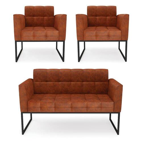 Estrutura: Madeira Eucalipto Espuma: D-23 Tecido: Corano Tipo de pés: Base Metálica Industrial Peso suportado: Até 120 Kg Garantia: 90 dias contra defeito de fabricação Montagem: O produto vai montado, apenas rosquear os pés Instruções de limpeza: Utilizar um pano limpo e levemente úmido Você irá receber: 01 Sofá Namoradeira e 02 Poltronas - Entregue em: 03 Volumes