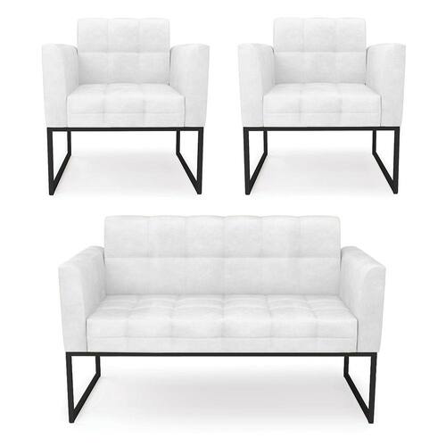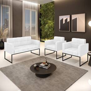 Estrutura: Madeira Eucalipto Espuma: D-23 Tecido: Corano Tipo de pés: Base Metálica Industrial Peso suportado: Até 120 Kg Garantia: 90 dias contra defeito de fabricação Montagem: O produto vai montado, apenas rosquear os pés Instruções de limpeza: Utilizar um pano limpo e levemente úmido Você irá receber: 01 Sofá Namoradeira e 02 Poltronas - Entregue em: 03 Volumes
