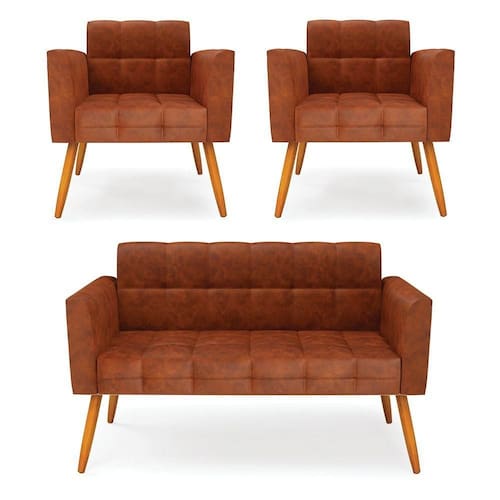 Você irá receber: 01 Sofá Namoradeira e 02 Poltronas - Entregue em: 02 Volumes