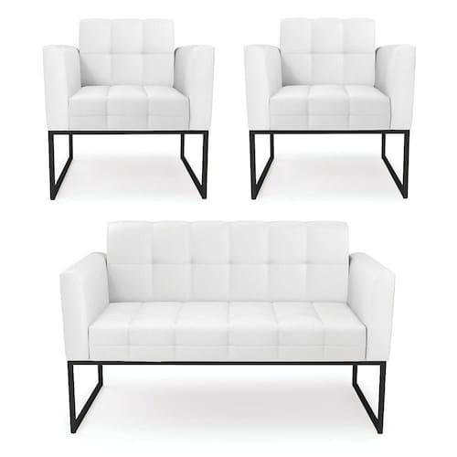Você gosta de colecionar vários momentos memoráveis com sua família e amigos? Que tal recebê-los, com móveis de altíssima qualidade que só a DRossi tem? O Kit 01 Namoradeira e 02 Poltronas Elisa é adequado para você! Seu design retrô é a grande tendência do momento. Pode ser utilizado em diversos espaços da casa, em salas, hall de entrada, quartos, cozinhas, varanda, sacada, escritório, dentre outros. Contém as seguintes características: A estrutura é feita de madeira de Eucalipto 100% de reflorestamento, e a Base Metálica Industrial Preto, além de ser resistente e durável, suporta em média até 120 kg. Assento, encosto e braços, contém enchimento de espuma D-23 e é estofado em tecido Corino, que oferece muito conforto e resistência ao sentar, com aquela sensação de maciez e aconchego. Possui também, detalhes de costura no encosto e assento, resultando em um acabamento impecável, conferindo muito mais valor e elegância ao seu espaço. Para complementar a decoração com esse lindo kit, a dica é utilizar mantas, almofadas ou vasinho de flor. E pronto, seu cantinho estará perfeito para descansar e relaxar! Aqui, você encontra várias opções, para que seus amigos e familiares se sintam acolhidos. Garanta já seu kit.