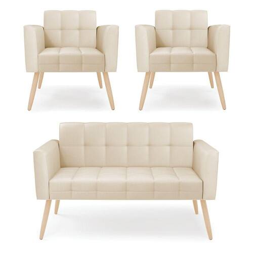 Você irá receber: 01 Sofá Namoradeira e 02 Poltronas - Entregue em: 02 Volumes