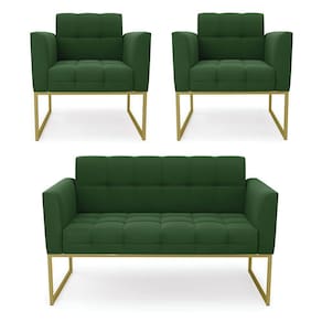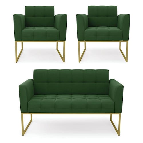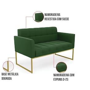 Kit 1 Sofá Namoradeira E 2 Poltronas Elisa Suede Verde Base Metálica Industrial Dourada - D'rossi