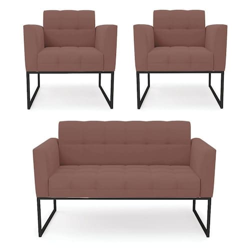 Você irá receber: 01 Sofá Namoradeira e 02 Poltronas - Entregue em: 03 Volumes