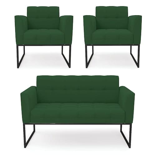 Você gosta de colecionar vários momentos memoráveis com sua família e amigos? Que tal recebê-los, com móveis de altíssima qualidade que só a DRossi tem? O Kit 01 Namoradeira e 02 Poltronas Elisa é adequado para você! Seu design retrô é a grande tendência do momento. Pode ser em diversos espaços da casa, em salas, hall de entrada, quartos, cozinhas, varanda, sacada, escritório, dentre outros. Contém as seguintes características: A estrutura é feita de madeira de Eucalipto 100% de reflorestamento, e a Base Metálica Industrial Preto, além de ser resistente e durável, suporta em média até 120 kg. Assento, encosto e braços, contém enchimento de espuma D-23 e é estofado em tecido Veludo, que oferece muito conforto e resistência ao sentar, com aquela sensação de maciez e aconchego. Possui também, detalhes de costura no encosto e assento, resultando em um acabamento impecável, conferindo muito mais valor e elegância ao seu espaço. Para complementar a decoração com esse lindo kit, a dica é utilizar mantas, almofadas ou vasinho de flor. E pronto, seu cantinho estará perfeito para descansar e relaxar! Aqui, você encontra várias opções, para que seus amigos e familiares se sintam acolhidos. Garanta já seu kit.