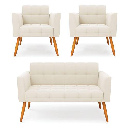 Você irá receber: 01 Sofá Namoradeira e 02 Poltronas - Entregue em: 02 Volumes