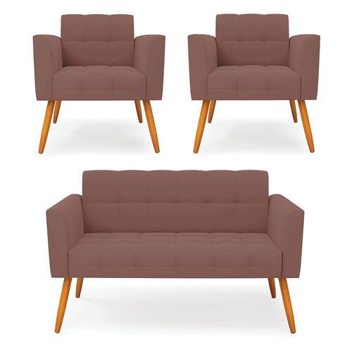 Você gosta de colecionar vários momentos memoráveis com sua família e amigos? Que tal recebê-los, com móveis de altíssima qualidade que só a D'Rossi tem? O Kit 01 Namoradeira e 02 Poltronas Elisa é adequado para você! Seu design retrô é a grande tendência do momento. Pode ser utilizado em diversos espaços da casa, em salas, hall de entrada, quartos, cozinhas, varanda, sacada, escritório, dentre outros. Contém as seguintes características: A estrutura é feita de madeira de Eucalipto 100% de reflorestamento, e os Pés Palito Castanho, além de serem resistentes e duráveis, suportam em média até 120 kg. Assento, encosto e braços, contém enchimento de espuma D-23 e é estofado em tecido Veludo, que oferece muito conforto e resistência ao sentar, com aquela sensação de maciez e aconchego. Possui também, detalhes de costura no encosto e assento, resultando em um acabamento impecável, conferindo muito mais valor e elegância ao seu espaço. Para complementar a decoração com esse lindo kit, a dica é utilizar mantas, almofadas ou vasinho de flor. E pronto, seu cantinho estará perfeito para descansar e relaxar! Aqui, você encontra várias opções, para que seus amigos e familiares se sintam acolhidos. Garanta já seu kit.