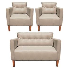 Kit 1 Sofá Namoradeira E 2 Poltronas Livia Corino Pés Chanfrado Castanho - D'rossi Cor Bege