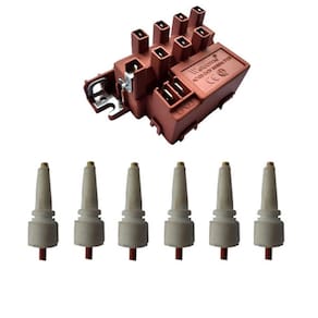 Kit com 1 usina de ignição e 6 eletrodos para fogões Dako Mueller. Os eletrodos possuem comprimento de 680,0 mm e a usina de ignição possui 7 saídas. A usina é composta por cerâmica, ponteira e terminal de metal, cabo de silicone resistente a alta temperatura e capa plástica PA 6.6.Tipo