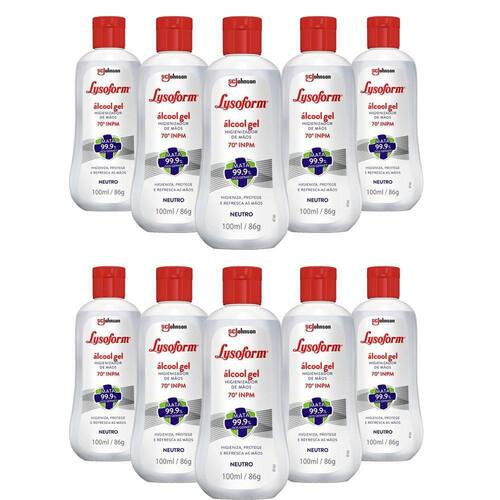 O Kit contém: 10 Álcool em Gel Lysoform Higienizador para as Mãos Neutro com 100ml cada.
