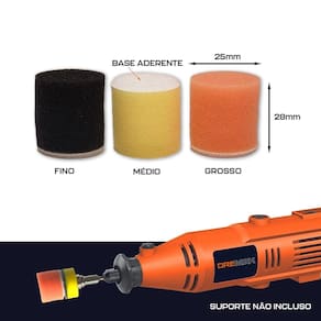 Kit 10 Almofadas de Espuma 25mm para Polimento com Base Aderente para Micro Retíficas Dremax - Marca: Dremax - Referência: EL002 - Material: Espuma esponja - Base aderente - Diâmetro: 25mm - Altura aproximada: 28mm - 4 Esponjas de Polimento Grosso Laranja - 4 Esponjas de Polimento Médio Amarela - 2 Esponjas de Polimento Fino Preta - Para uso com suporte de lixa com base aderente não incluso - Indicado para polir e encerar diversos tipos de materiais - O material da esponja é macio e delicado, o que não danifica a peça, e não é facilmente deformado. - Polimento suave, pode ser utilizado para polimento e detalhamento em veículos.. Excelente em aplicações como faróis de carros, faróis de neblina, luzes de freio, maçanetas, arranhões de vidro, painéis internos do console, ou algumas outras áreas pequenas. - Indicado para todas as marcas de micro retíficas, como Dremel, Charbs, Einhell, Black+Decker, Dremax, Mondial, Vonder, Titanium, Western, Ingco, Gamma, Wesco, etc. - : 90 dias contra defeitos de fabricação A DREMAX é a primeira e única marca brasileira dedicada exclusivamente às micro retíficas, acessórios e acoplamentos para esta indispensável ferramenta. Seja para trabalhos de precisão, artesanato, modelagem ou reparos, a DREMAX tem o produto certo para você.