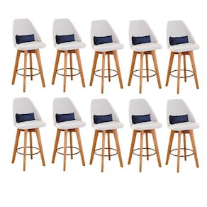 Kit 10 Banquetas Alta Maya Giratória Com Encosto Gourmet Linho Bege E Almofada Corino Azul Marinho - Gat Magazine Banqueta Maya Giratória - GAT MAGAZINE A Banqueta Maya possui assento e pés em madeira eucalipto com sistema giratório! Os pés contam com um reforço que proporciona um suporte de peso de até 120 Kgs.O assento é revestido com espuma D-23. Além de bonita e charmosa, vai trazer para seu ambiente elegância e proporcionará conforto para sua família e amigos nos momentos de lazer.