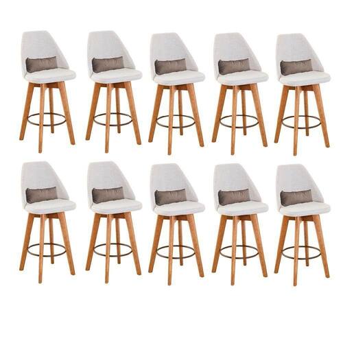 Kit 10 Banquetas Alta Maya Giratória Com Encosto Gourmet Linho Bege E Almofada Suede Bege - Gat Magazine Banqueta Maya Giratória - GAT MAGAZINE A Banqueta Maya possui assento e pés em madeira eucalipto com sistema giratório! Os pés contam com um reforço que proporciona um suporte de peso de até 120 Kgs.O assento é revestido com espuma D-23. Além de bonita e charmosa, vai trazer para seu ambiente elegância e proporcionará conforto para sua família e amigos nos momentos de lazer.