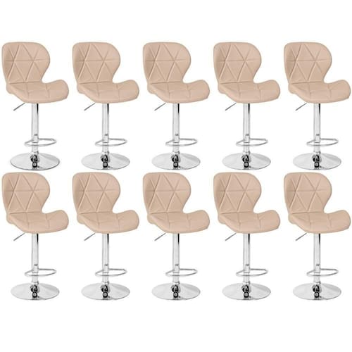 Kit 10 Banquetas Slim Estofada Giratória com Regulagem de Altura