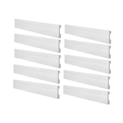 Material em poliestireno de alta densidade. Instalação rápida e sem sujeira. Produto pronto para pintura. Resistente à umidade. Imune à cupins. Não mofa ou apodrece. Usa somente cola, não sendo necessário parafusos, buchas ou outro tipo de fixação mecânica. Acabamento: Pintura Altura: 11 Cor: Branco Cor do Produto: Branco Cor Predominante: Branco Informação Complementar: 10x Rodapé de Poliestireno Alta Densidade FB11 HDPS Wallstyl 18mmx11cm Metro Linear Branco Altura: 11 cm
