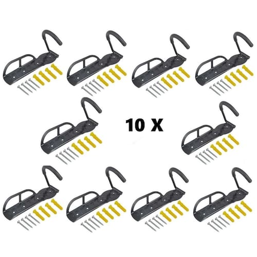 Kit 10 bicicletário bike condomínio industria estacionamento especificações: - kit 10 suporte para armazenagem de bicicleta em posição vertical Especificações: - suporte para armazenagem de bicicleta em posição vertical- produzido em aço- limite de carga: 25 kg- peso do suporte 0,520 gramas- acompanha 4 buchas e 4 parafusos de fixação em cada suporte instalação: - 1. Encontre uma área segura da parede onde haja espaço suficiente para a bicicleta.- 2. Garanta que a estrutura da parede seja sólida e não haja qualquer estrutura metálica, hidráulica ou elétrica na área.- 3. Utilize o próprio suporte para marcar a posição dos furos a serem feitos com um lápis. Garanta que os furos estejam perfeitamente alinhados na posição vertical.- 5. Alinhe os furos do suporte com os furos na parede, garantindo que o gancho plastificado esteja posicionado para cima.- 6. Utilize os parafusos e buchas que acompanham o produto para fixar o suporte à parede. Garântia 3 mêses