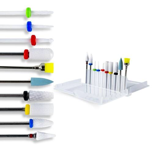 Contém: 01 - Broca Cerâmica C Umbrella 01 - Broca Cerâmica Cone Fino 01 - Broca Cerâmica Flame 01 - Broca Cerâmica Flame S 01 - Broca Cerâmica Flame M 01 - Broca Cerâmica Large Barrel 01 - Broca Escovinha de Limpeza 01 - Broca Polidora 01 - Broca Cerâmica Smooth Top 01 - Broca Cerâmica Topo Redondo 01 - Caixa Organizadora com 10 Divisórias de Brocas. O kit ideal para manicures Perfeito para todos os atendimentos, composto por cortes de granulação Azul - Média, Amarela Super Fina, Vermelha - Fina, Verde Claro indica uma granulação Grossa e Preto - Muito Grossa. Composto por modelos em cerâmica, escovinha de limpeza e broca polidora. Compatíveis com diversos modelos de lixadeiras e canetas. Indicado para profissionais que buscam precisão e eficácia em todas as etapas do alongamento, desde a remoção até o acabamento final. Cada broca foi projetada para uma função específica, garantindo versatilidade e resultado impecável: Broca Cerâmica C Umbrella: Formato de guarda-chuva, ideal para remoção de gel e acrílico. Broca Cerâmica Cone Fino: Fina e alongada, perfeita para acabamentos e cutículas. Broca Cerâmica Flame: Formato chama, versátil para remoção e refinamento. Broca Cerâmica Flame S: Versão mais suave da Flame, para remoção delicada. Broca Cerâmica Flame M: Média abrasividade, para remoção mais eficiente. Broca Cerâmica Large Barrel: Cilíndrica, ideal para nivelamento e remoção rápida. Broca Escovinha de Limpeza: Remove resíduos e pó das unhas. Broca Polidora: Dá brilho e acabamento suave às unhas. Broca Cerâmica Smooth Top: Com topo arredondado, segura para cutículas e remoção uniforme. Broca Cerâmica Topo Redondo: Semelhante à Smooth Top, Utilizado para acabamento sem agredir a pele. Características Principais: - 10 modelos de brocas; - Ideal para manicure, pedicure e podólogos; - Material de alta qualidade; - Acompanha caixa que organiza até 10 brocas com divisória; - Brocas de granulação: Média, Super Fina, Fina, Grossa e Muito Grossa; - Escovinha de limpeza; - Broca polidora; - Kit completo que atende todas as técnicas. Boas Compras ;