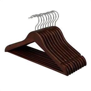 Kit 10 Cabide de Madeira para Organização de Roupas Características Gerais do Produto: Benefícios do produto: Durabilidade, elegância, funcionalidade. Dimensões AxLxP CM : 22,5 X 45 Produzido em: Aço e Madeira Cor acabamento: Marrom : 90 dias junto ao fabricante Acompanha o produto: 10 Cabide : 90 dias Marca: Não Informado Ean: 7898771820315