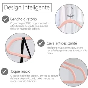 Kit 10 Cabides Infantis de Veludo Slim – Antideslizante, Ultra Fino e Elegante Organize o guarda-roupa das crianças com praticidade, charme e cuidado com as roupas. O Kit com 10 Cabides Infantis de Veludo Slim foi desenvolvido para quem valoriza qualidade e funcionalidade no dia a dia. Seu design ultra fino economiza espaço, enquanto a textura aveludada antideslizante evita que as peças escorreguem ou deformem, mantendo tudo sempre no lugar. Com curvas delicadas, os cabides preservam a estrutura das roupas, mesmo as mais sensíveis, e o acabamento sofisticado torna o ambiente mais organizado e elegante.
