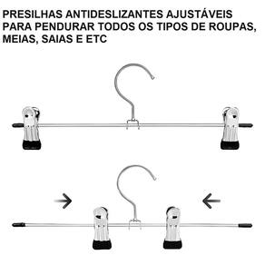Dicas Shopmania: 1º Dica: Os cabides com pegador também são indicados para calças e vestidos tomara que caia; 2º Dica: As presilhas se movem entre a haste do cabide para colocar as roupas do tamanho ideal; 3º Dica: Eles podem ser utilizados para organizar roupas de diversos tipos.
