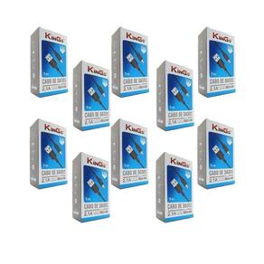 Kit 10 Cabos USB V8 Kingo Preto 1m 2.1A para Galaxy J5 Pro É super resistente, este cabo Micro-USB V8 2.0 conecta seu dispositivo diretamente a seu computador para sincronizar de forma rápida e eficiente seus dados ou carregar seu aparelho. Conecte-se ao computador para sincronização e transferência de dados.