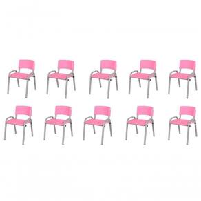 Kit 10 Cadeira Iso Infantil Creche, Base Cinza Rosa