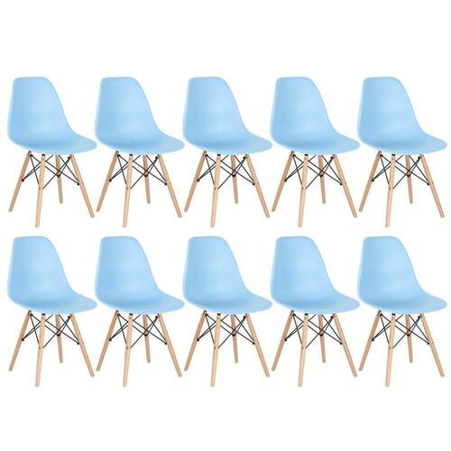 Kit 10 Cadeiras Charles Eames Eiffel Dsw Com Pés De Madeira Clara Azul Claro