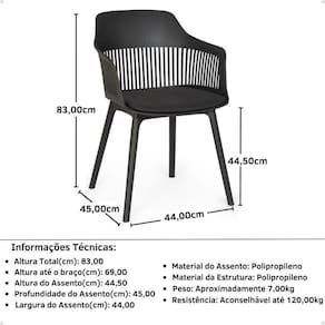Tonalidade: Preto | Altura: 83 | Produto: Cadeira de Jantar Marcela | Largura: 44 | Material da Estrutura: Polipropileno | Cor: Preto | Peso do Produto: 7 | Estado de Origem: SC | Material para Filtro: Polipropileno | Largura do Produto (cm): 44 | Peso do Produto (Kg): 7 | Comprimento do Produto (cm): 45 | Altura do Produto (cm): 83 | Profundidade Montado: 45 | Largura Montado: 44 | Altura Montado: 83 | Fabricante: Magazine Decor | Acompanha Almofada: Sim | Pronfundidade: 45 | Cômodo Indicado: Cozinhas | Garantia do Fabricante: 3 | Profundidade: 45 | Acompanha Braço: Não | Altura do Produto com Embalagem (cm): 47 | Largura Produto Com Embalagem (cm): 45 | Comprimento Produto Com Embalagem (cm): 51 | Peso Produto Com Embalagem (Kg): 100 | Nome do Simples no Fornecedor: Cadeira de Jantar Marcela | Conteúdo da Embalagem: 10 Cadeiras | Necessita Montagem: Sim | Instruções/Cuidados: Não Limpar com Materiais Abrasivos | Descrição do Tamanho: 83x44x45