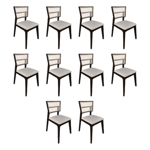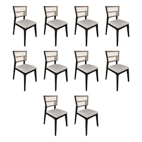 Kit 10 Cadeiras de Jantar Manuela em Tela Assento Veludo Bege Base em Madeira Maciça - Castanho