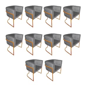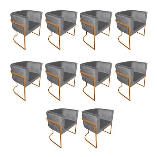 AS IMAGENS SÃO MERAMENTE ILUSTRATIVAS E PODEM SOFRER VARIAÇÕES DE COR E PEQUENOS DETALHES DE ACORDO COM O SEU MONITOR, ILUMINAÇÃO DO AMBIENTE E ATÉ MESMO A SUA PERCEPÇÃO VISUAL.Kit 10 Cadeiras De Jantar Premium Base De Ferro Cobre Veludo Cinza