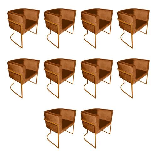 Kit 10 Cadeiras de Jantar Premium Base de Ferro Cobre Veludo Terracota - Laranja