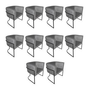 Kit 10 Cadeiras De Jantar Premium Base De Ferro Preta Veludo Cinza - Blush