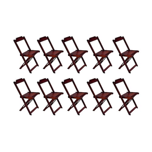 Kit 10 Cadeiras De Madeira Dobravel Imbuia é ideal para bares, restaurantes, estabelecimentos, áreas de lazer e tambem para sua casa. Feito em madeira maciça, tornando resistentes e duráveis. Seu design permite que seja encaixado em qualquer ambiente, trazendo um toque a mais para seu estabelecimento. Além de sua durabilidade, o que lhe trará conforto para servir seus clientes. Por ser dobrável torna-se mais fácil guardar, manusear e limpar o produto. Atenção: EVITE USAR PRODUTOS ABRASIVOS E QUíMICOS PARA LIMPEZA DO PRODUTO, aconselha-se o uso de pano umedecido para melhor conservação; mantenha o produto fora de chuva e sol constantes. CADEIRA Cor: Imbuia Modelo: Dobravel Dimensões: Altura 80cm | Largura 45cm | Profundidade 42cm