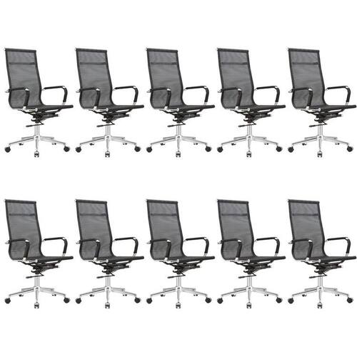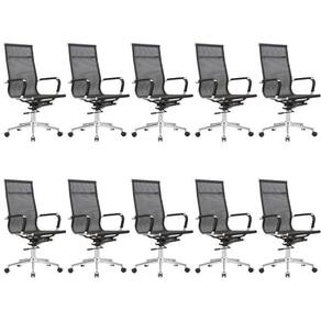 A cadeira Sydney Presidente é toda em tela com aço cromado. A tela garante resistência e conforto para quem estiver usando, além de também possuir seus braços revestidos, para que a pele não entre em contato com o metal direto. Ela possui um assento alongado, o que a torna perfeita para salas de diretoria e mesas de reunião, além de possuir o sistema relax para que seja melhor para seus usuários, travando na vertical, ou balançando de acordo com o movimento do corpo. Altura do Conjunto: 113 cm Ambiente: null Ambiente Principal: Escritório Cor: Preto Informação Complementar: 10x Cadeira Escritório Giratória Sidney Presidente Preto Largura: 56 cm Altura: 113 cm Peso: 9,47 kg Profundidade: 60 cm Necessita Montagem: Sim