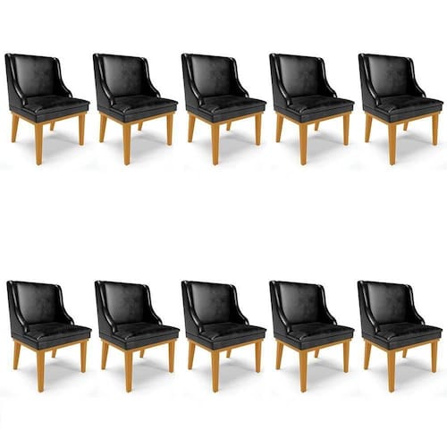 Requinte e sofisticação para sua Sala de Jantar, é exatamente para oferecer esses benefícios que apresentamos o Kit 10 Cadeiras Estofadas Base Fixa de Madeira Castanho Lia Sintético Premium Preto, da Ibiza, confira os detalhes!
