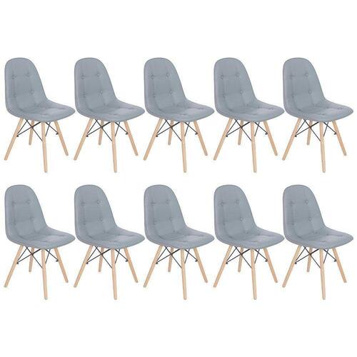 Kit 10 cadeiras estofadas Charles Eames Eiffel Botonê com pés de madeira clara Cinza médio -