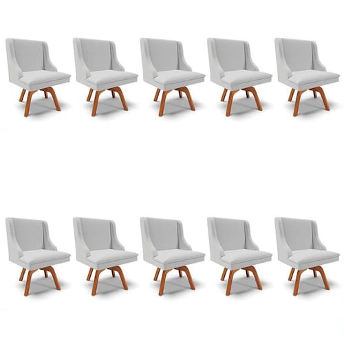 Para você que tem bom gosto, conheça o Kit 10 Cadeiras Estofadas Giratória para Sala de Jantar Lia Linho Cinza, da Ibiza e leve elegância e conforto para sua casa! Vem conhecer os detalhes!