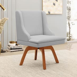 Escolher os móveis para a Sala de Jantar é uma das partes mais divertidas ao se decorar a casa, mas, é também um desafio, já que, os móveis devem ser duráveis, bonitos e harmonizar com o ambiente. Por isso, a Cadeira Estofada Lia é uma ótima opção, além de ser produzida em Madeira Eucalipto, ecologicamente correta, a Base Giratória em madeira suporta até 120 kg! Além disso, é um móvel confortável, composto em espuma D-23 e revestido em Linho, tecido versátil, confortável, fresco, durável e agradável ao toque. É um tecido de fácil limpeza e resistente a sujeiras e manchas. As Cadeiras Estofadas são ideais para combinar com mesas de madeira ou vidro, criando um ambiente aconchegante e sofisticado para suas refeições em família ou com amigos.