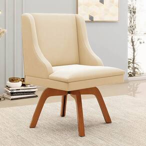 A Cadeira Estofada Lia possui design sofisticado e é ideal para quem busca aconchego e elegância na hora das refeições. A Base Giratória de Madeira é resistente e permite que se movimente com facilidade e ainda suporta até 120kg! Além disso, a Cadeira Estofada é produzida com Madeira Eucalipto de reflorestamento ecologicamente correta e o estofado é composto em espuma macia D-23 e revestido em tecido Suede, altamente resistente, agradável ao toque, confortável e versátil, ou seja, combina com vários estilos de decoração!