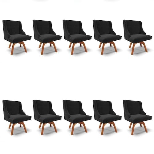Altura: 85 cm | AssemblyRequired: Sim, sugerimos a contratação do nosso serviço de montagem (para os CEPs em que o serviço está dispon | Color: Preto | ColorFamily: Preto | ColorSimple: Preto | ColorSupplier: Preto | Cor: Preto | Gênero: Unissex | Largura: 55 cm | Manual: Sim | Material: Madeira de Eucalipto | MaterialFamily: Madeira | Model: Lia | Origem: | OriginCountry: | OriginState: PR | Peso: 170 kg | ProductContents: 10 Cadeiras | ProductHeight: 85 | ProductInstructions: Produto para uso em ambiente interno, nao devendo ficar exposto ao sol, calor e umidade excessivos. | ProductLength: 55 | ProductWarranty: 90 dias após o do produto | ProductWeight: 170 | ProductWidth: 55 | Profundidade: 55 cm | Requere montagem: Sim | SizeDescription: 85 x 55 x 55 cm | SupplierSimpleName: Kit 10 Cadeiras Estofadas Base Giratória de Madeira Lia Suede Preto - Ibiza