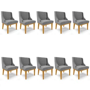 Mais que do que um simples móvel, a cadeira estofada é um artigo decorativo tão importante quanto a mesa de jantar, pois, ela agrega beleza na decoração e chama a atenção de quem vê, por isso, apresentamos o Kit 10 Cadeiras Lia que foi projetado com um design exclusivo que facilita combiná-las com os outros móveis, deixando sua sala de jantar perfeita para você aproveitar. As cadeiras são produzidas com materiais de alta qualidade, para que não se preocupe em desfrutar de bons momentos durante as refeições com sua família e amigos. Essa cadeira de jantar possui estrutura em Madeira Eucalipto de reflorestamento, ecologicamente correta e a base fixa de madeira suporta até 120 kg, sem impacto. A parte estofada é composta por espuma macia com densidade D-23 e o revestimento é em Linho, que para alguns é a representatividade da nobreza! Esse tecido é versátil, durável, macio, conta com propriedades térmicas, antialérgicas e é de fácil limpeza.