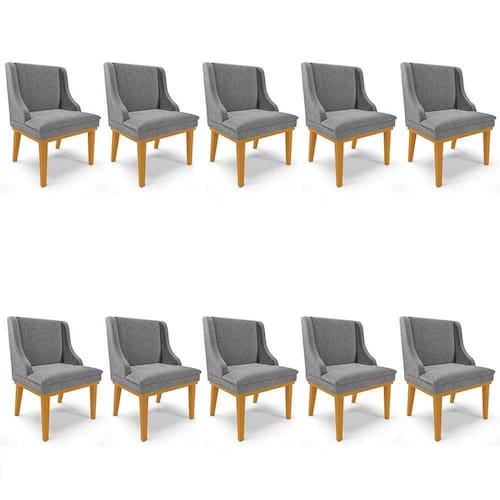 Que tal, unir conforto e beleza e deixar a sua casa mais bonita? Vem conhecer o Kit 10 Cadeiras Estofadas para Sala de Jantar Base Fixa de Madeira Castanho Lia Linho Grafite, que a Ibiza preparou especialmente para você!
