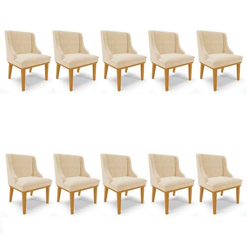 Para quem procura conforto, qualidade e elegância, o Kit 10 Cadeiras Estofadas para Sala de Jantar Base Fixa de Madeira Castanho Lia Suede Bege, da Ibiza, é a escolha certeira!