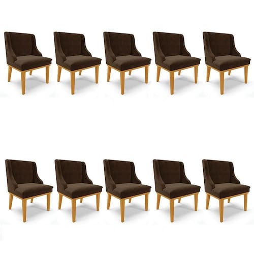Para quem procura conforto, qualidade e elegância, o Kit 10 Cadeiras Estofadas para Sala de Jantar Base Fixa de Madeira Castanho Lia Suede Marrom, da Ibiza, é a escolha certeira!