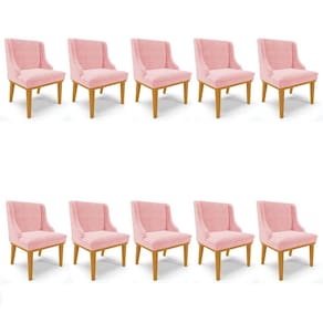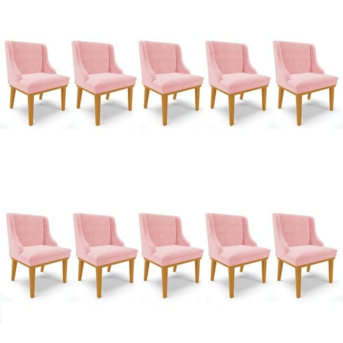 Para quem procura conforto, qualidade e elegância, o Kit 10 Cadeiras Estofadas para Sala de Jantar Base Fixa de Madeira Castanho Lia Suede Rosa bebê, da Ibiza, é a escolha certeira!