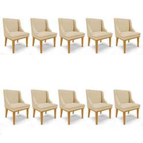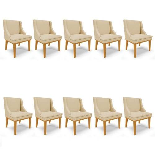 Para quem busca conforto, beleza e qualidade, vem conhecer o Kit 10 Cadeiras Estofadas para Sala de Jantar Base Fixa de Madeira Castanho Lia Veludo Off White, da Ibiza!